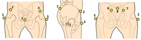 - van Sint Jan, S. Color Atlas of Skeletal Landmark Definitions E-Book: Guidelines for Reproducible Manual and Virtual Palpations; Elsevier Health Sciences: Edinburgh, UK, 2007. [Google Scholar]