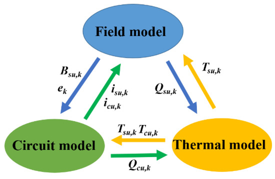 The coupling relationship among the field, circuit and thermal model of the HTS coils is summarized in Figure 3: