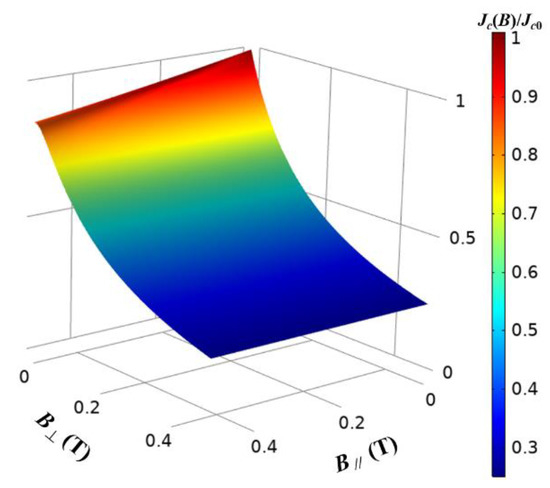 To consider the complex anisotropy of YBCO tapes in our numerical model, the dependence of the critical current density on the magnetic flux density B and the temperature T is expressed as [4,20,21,22]: