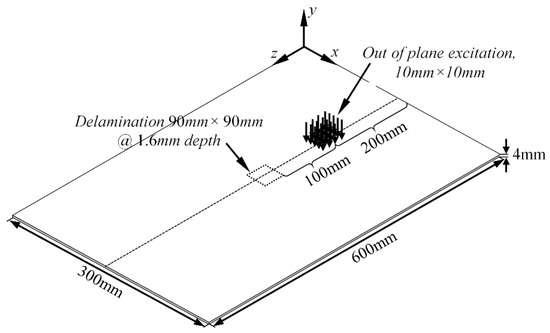 Schematic diagram of considered example of a composite plate with delamination-type damage.