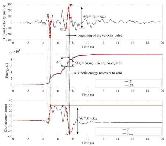 The amount of ΔEi consumed by the hysteresis energy, ΔEi, can be predicted by vgi−1, vgi, kgi, kgi+1 and kui, which were given by the time history data of the earthquake records and Equation (19):