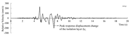 Therefore, as shown in the right half of Figure 16, for the cases of kui/kgi being between 0 and 0.8, Δyi-pre (the predicted value of the peak response displacement change of the isolation layer) can be predicted by vgi-1, vgi, kgi, kgi+1 and kui, which are given by the time history data of the earthquake record and Equation (19).