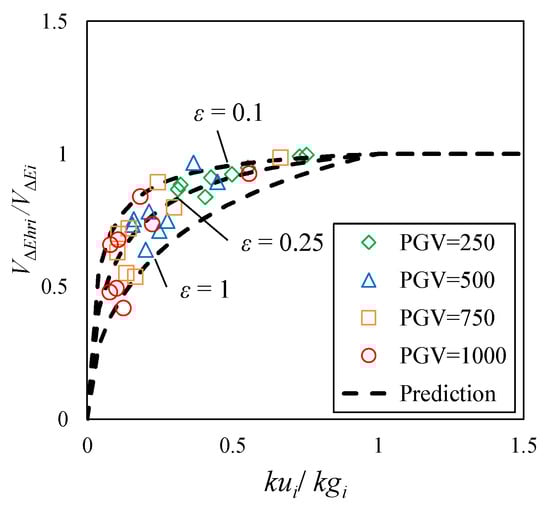 kgi+1 was only contained in the rightmost fraction of Equation (25), which can be considered as the percentage of energy absorption, and it was attempted to simplify this fraction in order to not only simplify the equation but also make the method easier to apply in the design stage. Therefore, it is generalized with a generalization parameter, ε: