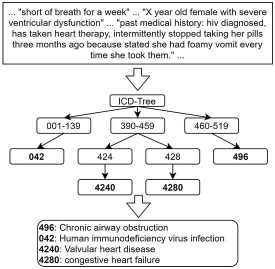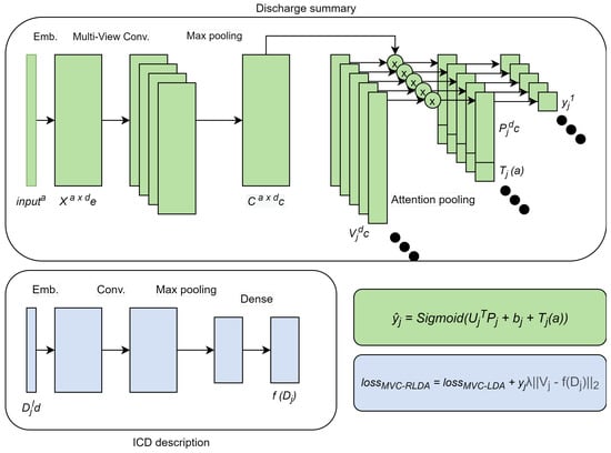 - Xu, K.; Lam, M.; Pang, J.; Gao, X.; Band, C.; Mathur, P.; Papay, F.; Khanna, A.K.; Cywinski, J.B.; Maheshwari, K.; et al. Multimodal machine learning for automated ICD coding. In Proceedings of the 4th Machine Learning for Healthcare Conference; Doshi-Velez, F., Fackler, J., Jung, K., Kale, D., Ranganath, R., Wallace, B., Wiens, J., Eds.; PMLR: Ann Arbor, MI, USA, 2019; Volume 106, pp. 197–215. [Google Scholar]