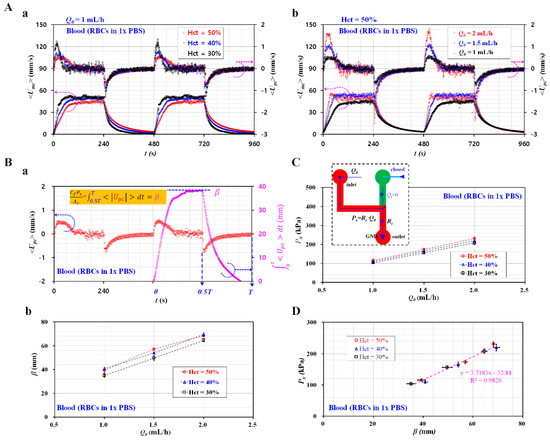 Figure 2(A-a), both velocities tended to decrease substantially with respect to the hematocrit. To evaluate the contributions of