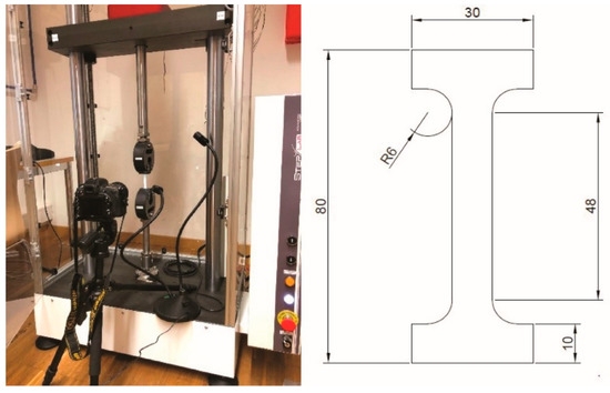 Digital image correlation (DIC) was used for this purpose. A reflex Nikon D750 camera with a 24–85 zoom, 32 MPixel resolution, and a stabilizer was placed perpendicularly to the specimen surfaces. It acquired pictures of the sample at each 0.5 s. External light sources were used for a better illumination of the specimen′s surface.