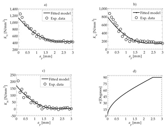 For a set of experiments with a specific axial depth of cut, the system of Equations (7) is solved to obtain the and cutting coefficients. The computed data were fitted by using a second-order polynomial function as listed in Table 2.