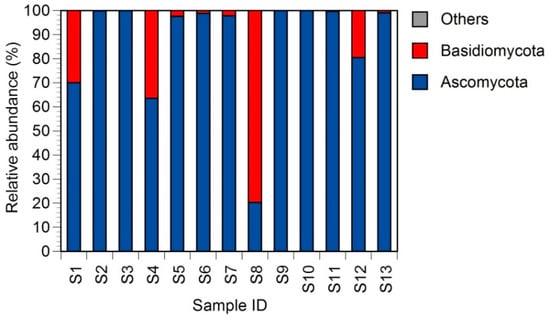 Fungal compositions at the phylum level. The “others” category includes ambiguous sequences.