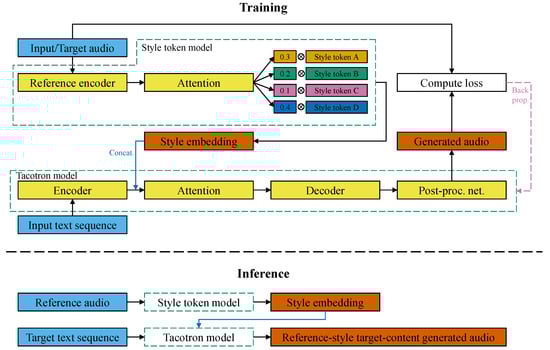 - Wang, Y.; Stanton, D.; Zhang, Y.; Ryan, R.S.; Battenberg, E.; Shor, J.; Xiao, Y.; Jia, Y.; Ren, F.; Saurous, R.A. Style tokens: Unsupervised style modeling, control and transfer in end-to-end speech synthesis. In Proceedings of the International Conference on Machine Learning, Stockholm, Sweden, 10–15 July 2018; Volume 80, pp. 5180–5189. [Google Scholar]