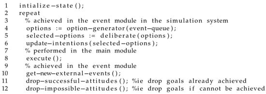 - Rao, A.S.; Georgeff, M.P. Modeling rational agents within a BDI-architecture. In Proceedings of Knowledge Representation and Reasoning; Fikes, R., Sandewall, E., Eds.; Morgan Kaufmann: San Mateo, CA, USA, 1991; pp. 473–484. [Google Scholar]
