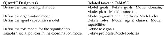 In this section, the design methodology, an adaptation of the O-MaSE methodology [30], is briefly outlined for adopting the OJAzzIC model to create a MAS. The design methodology is described in more detail elsewhere [74,78].