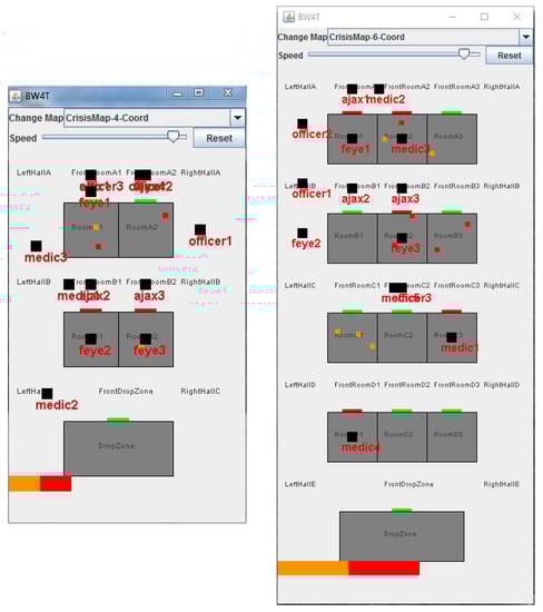 - Johnson, M.; Jonker, C.; van Reimsdijk, B.; Feltovich, P.J.; Bradshaw, J.M. Joint Activity Testbed: Blocks World for Teams(BW4T); LNAI, ESAW 2009; Aldewereld, H., Dignum, V., Picard, G., Eds.; Springer: Berlin/Heidelberg, Germany, 2009; Volume 5881, pp. 254–256. [Google Scholar]