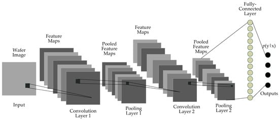 The results of the experiments presented in this paper show that the use of convolution neural networks in classifying wafer images can be a feasible alternative to manual inspection and have been shown to perform well above other known machine-learning methods, such as SVM, logistic regression, random forest, and soft voting ensemble. However, the misclassification that occurred during the validation phase shows that the proposed design can be further improved. In future research, other defect types, including mixed types, should be added into the types of defects to be classified and, if possible, there should be an increase in the number of training samples used in future investigations. There are plans to investigate the effective methods for classifying defect images using other flavors of the convolution neural network architectures in the future, including the Mask R-CNN [24].