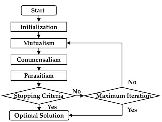 where xi’ and xj’ are the updated position of the i-th and j-th organisms, respectively; and BF1 and BF2 are the benefit factors of the i-th and j-th organisms, respectively which are randomly assigned as either 1 or 2 at each iteration step. The benefit factors are utilized to simulate whether the two organisms partially or fully benefit from the other. Since BF1 and BF2 are randomly assigned, tuning is not required in the mutualism phase. The commensalism phase is performed after the mutualism phase is completed. Similar to the mutualism phase, two organisms are randomly selected and one of them intends to benefit from the other by: