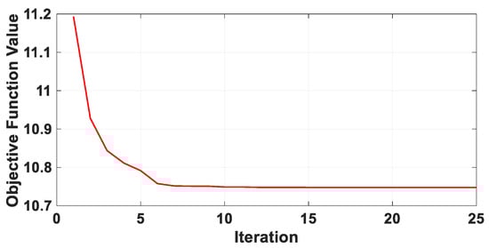 Convergence curve of objective function using SOS (symbiotic organisms search).