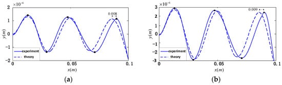 Figure 15 shows the comparison of the theoretical calculation and actual measurement of vibration response of the touch beam under the excitation voltage peaks of 100 V and 200 V. From these results, the following conclusions can be drawn.