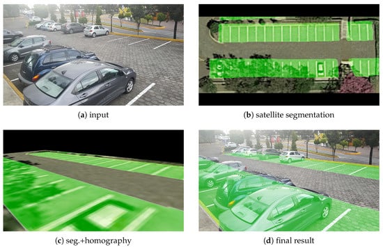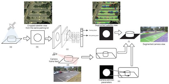 Recall that our solution proposal consists of using the segmentation of a public satellite image and combine it with the surveillance camera view to generate an extremely accurate segmentation of the surveillance camera, regardless of any temporal or obstacles interfering with camera’s view. An outline of the developed method is given in Algorithm 1. Also, a graphical overview of the proposed method is provided in Figure 2.