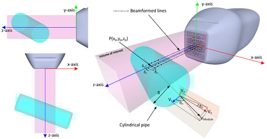 One of the main limitations of this work was using unsteered plane waves, which limited the extension of the investigated region due to the small size of the probe aperture. For example, as seen in the right panel of Figure 6, the paraboloid representative of the velocity module was partially cut off, since only 3.6 mm (about one-half of the pipe diameter) could be investigated along both the x and y axes. A possible alternative to extend the region of interest could be the transmission of diverging waves, although it should be taken into account that they involve a worse signal-to-noise ratio (SNR) [41,42].