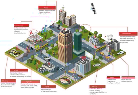 Furthermore, in the day-to-day management of smart cities, general data play an important role. However, big data remains a problem in its own right. Therefore, this mass of data constitutes one of the major challenges of moderate computing [9,10,11,12,13]. It is almost impossible to collect and then process this data using conventional computer systems. However, for smart cities, most of the literature [14,15] agrees that once collected and processed, these data can support or improve most of the services offered in smart cities (operation of renewable electricity production facilities, real-time status of public distribution networks, monitoring of road traffic, measurement of pollution levels, etc.).