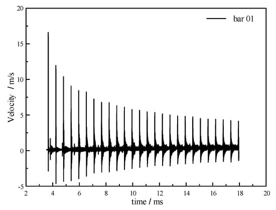The time of elastic wave propagation to the free end of the bar 01 can be obtained by the elementary theory as in Equation (20), where the length of the bar is 1500 mm and the corresponding elastic wave velocity given in Table 3 is 5.2595 km/s.