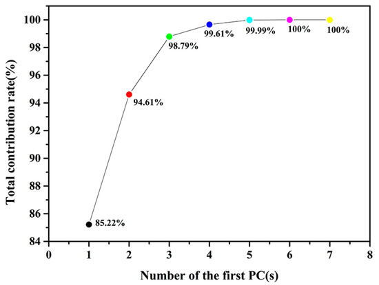 Contribution rate distribution of principal components (PCs).