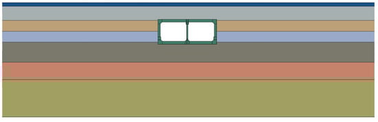 Daikai station was built on diluvial deposits and is overlain by alluvial deposits. The soil profile can be simplified into seven horizontally layered soil layers, and the characteristics and properties for each soil layer can be found in Table 1 [28]. Location between subway station and soil is shown in Figure 9. When using the Davidenkov model, outlined in Section 3.2, to simulate the dynamic behavior of soil, the fitting parameters , and in Equations (6)–(8) for different types of soil are referred to in [39].
