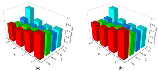 Ratios of the relative displacements of the central column of the underground structures controlled with a negative-stiffness amplification-system (NSAS)-based isolation system, and a conventional isolation system (CIS): (a) ;(b) .
