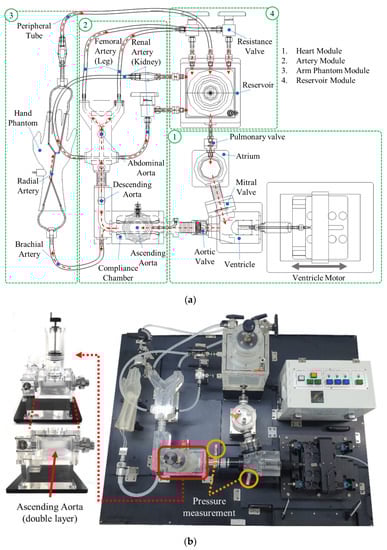 22]. It consists of components such as the ventricle, atrium, valves, arteries, and peripheral resistances. In terms of mechanical components, it consists of a pump that acts as a heart, tubes that simulate aorta and arteries, and a reservoir that acts as a vein and peripheral resistance.