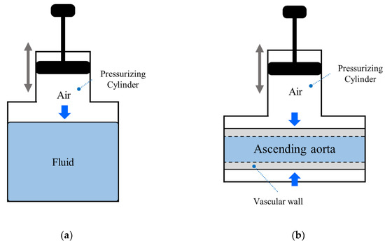 Figure 5b shows the compliance chamber with a pressurizing cylinder at the ascending aorta, which are included in the new mock circulatory platform of this study. To change the compliance, the most effective way is to change the material of vascular wall with different compliances, but this is very inconvenient to be realized. Hence, as an alternative, the reservoir structure, as shown in