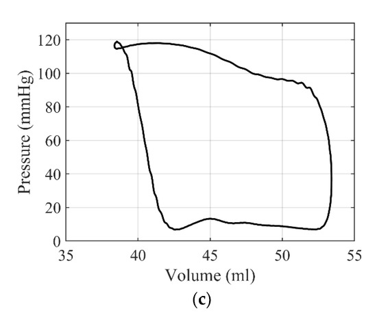 Figure 8c shows a ventricular pressure × 10—volume loop of the fabricated mock circulatory platform. This is similar to the pressure × 10—volume loop calculated from the Wiggers diagram of