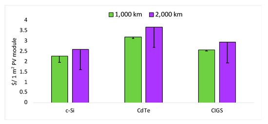 Average cost of transportation of different PV technologies.
