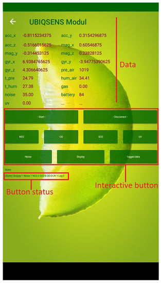 Due to the high accuracy requirements of the data in motion tracking, no sensor activation is applied for gyroscope, accelerometer, and magnetometer. Here, the data are transmitted to the smartphone, immediately after BLE establishes the channel. As the air pressure, temperature, and humidity values are used for calibration, their data are also transmitted continuously without sensor activation/deactivation. Furthermore, we strictly aim at protecting measured data. We integrated memory (256 kB) to buffer data when BLE is temporarily unavailable. Due to the limited capacity of the memory, it is used only if necessary. A specific scenario for retrieving data from the internal memory has been implemented, too. So far, the transmission of buffered data requires a user decision. Once the user has pressed the “Data log” button on the smartphone, data are transmitted in a first-in-first-out (FIFO) mode as they have been stored. The last packet of stored data is followed with an empty packet that indicates the re-start of real-time data acquisition (Algorithm 1).