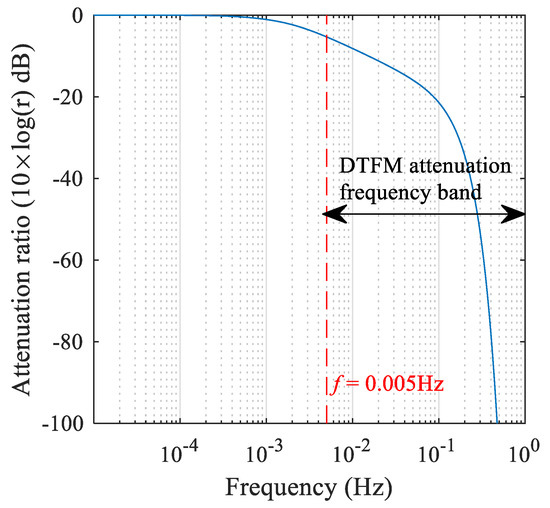 The theoretical modeling results of the temperature fluctuation attenuation ratio of the designed DTFM attenuator are shown in Figure 4. It can be seen from the curve that the attenuation has the characteristic of low-pass filtering. For the CCW temperature fluctuation at low frequency, from 0 to 0.005 Hz, the temperature fluctuation is within the closed loop temperature feedback control bandwidth of the CCW machine, and can be suppressed through closed loop control of the machine. For the CCW temperature fluctuation above 0.005 Hz, it can be reduced by the DTFM attenuator to tens of dB. As a result, the temperature stability of CCW is effectively improved without any deterioration of the dynamic performance of the CCW temperature control.