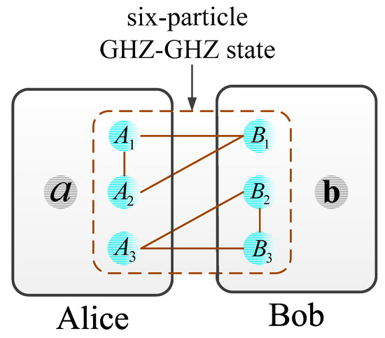 where the particles , and belong to Alice and particles , and belong to Bob, as shown in Figure 1.