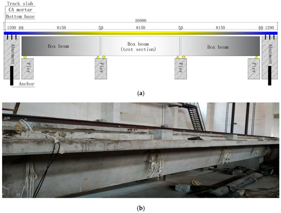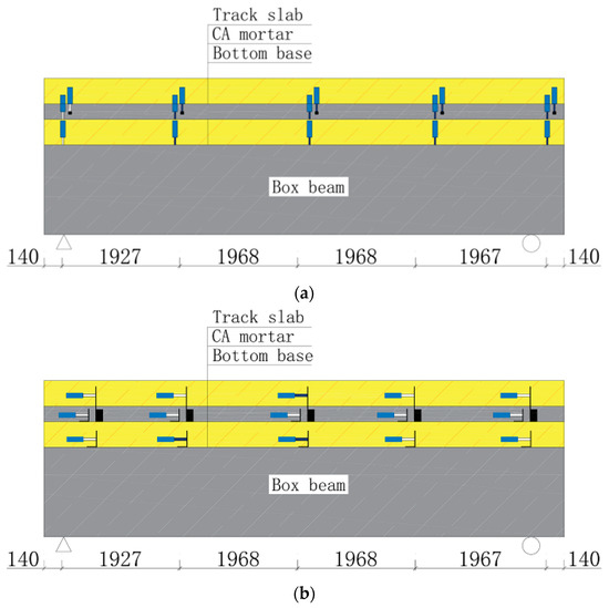 - Zhou, L.Y.; Yang, L.Q.; Shan, Z.; Peng, X.S.; Akim, D.M. Investigation of the fatigue behaviour of a ballastless slab track-bridge structure system under train load. Appl. Sci. 2019, 9, 3625. [Google Scholar] [CrossRef]