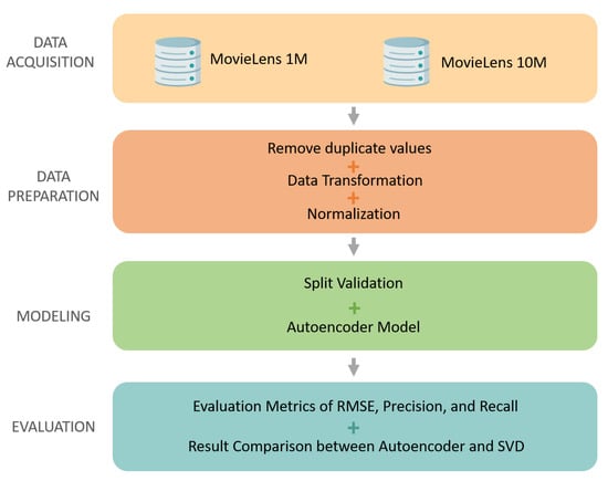 The organization of the remainder of the paper is as follows—Section 2 will present the related work on collaborative filtering, autoencoders, and SVD. The methodology used in this study will be presented in Section 3, where a small overview of the datasets used, the data preparation, the architecture of the autoencoder as well as some evaluation metrics will be discussed. Section 4 will present the main findings and their discussion. Finally, Section 5 concludes this article and points out possible future work.