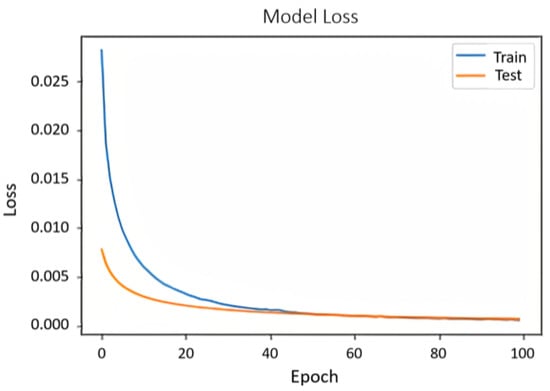 Figure 10 shows the loss model of the ML-10M dataset. When analyzing the figure, we can observe a behavior similar to that of Figure 8, but the loss and val_loss present a lower value.