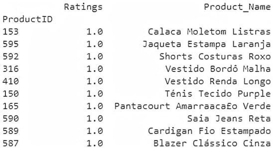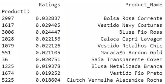 To conclude this evaluation of the results, in Figure 12, 10 products are presented which the user has already evaluated with a high rating. These are displayed in order to have a short comparison with the 10 products suggested by the model, shown in Figure 13.
