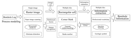 Based on the existing methods for extracting information from the borehole logs, there are several problems in the traditional process. Firstly, there are a large number of irregular tables in borehole logs, which are connected by polylines. Secondly, there is an amount of geological symbols and technical vocabulary in the geological field, and the traditional optical character recognition (OCR) image recognition method does not identify these complicated shapes with sufficient accuracy. Therefore, the traditional method of image recognition is not suitable for the extraction of information from borehole logs. Even the manual input method is inefficient.
