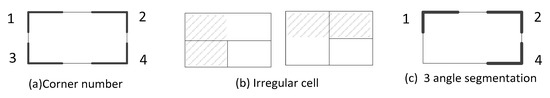 where (x, y) stores the coordinates of the corner and the type stores the type of the corner. If there is a corner mark s = {point (50, 100), type [1, 0, 1, 0]}, it represents a compound corner mark located at (50, 100) with two corner attributes of No.1 and No.3.