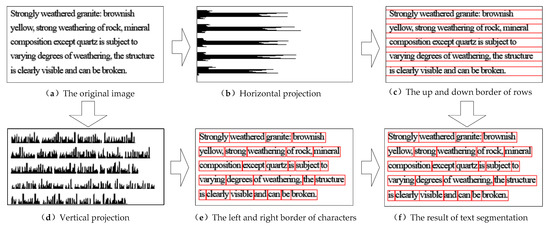 In the previous chapter, the identification of the structure of the borehole histogram was completed, and a series of divided cell images were obtained. Before text recognition, the cell image needs to be segmented at the character level. This process first divides the cell row, then the column, and finally the individual characters(Figure 10).