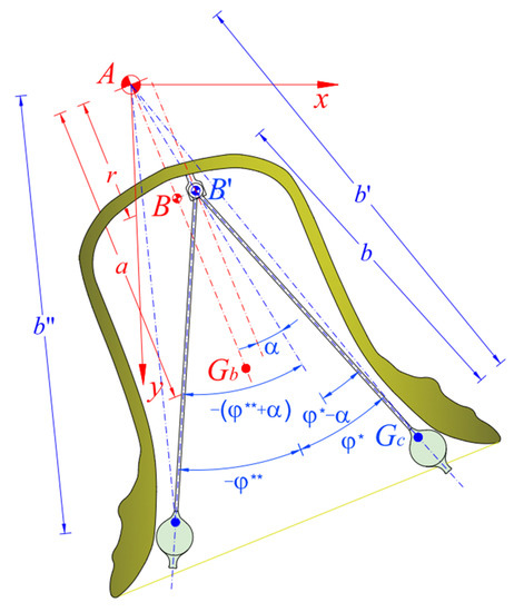 An error affecting the position of the pivot of the clapper is hypothesized. Be such an error, which is the distance between the actual position of the clapper pivot and its theoretical position. Obviously, the positioning error can be expressed in other terms by means of the angle ,