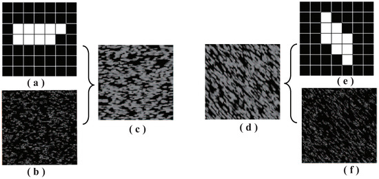 where ⊕ denotes a Minkowski set addition. This definition is, however, inconvenient since the difference between and (n + 1)B is too large if the original B is large. In this experiment, we used a single-sized structuring element (n = 1) as the grain for texture synthesis. is a point configuration (skeleton) that is a set indicating the pixel positions for locating grain . These locations were randomly generated, whereas the number and directional strength of the locations could be controlled. N is the maximal size of magnification.