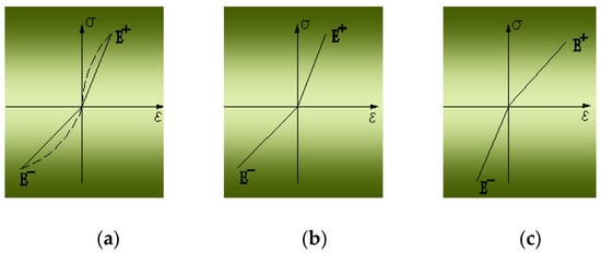 in which superscript “+/−” denotes “tension/compression”, similar to Equation (1). Until now, Equations (1)–(3) construct the materials relation considering piezoelectric effect as well as bimodular functionally-graded properties.