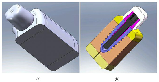 Finite element method (FEM) is a helpful tool in the study of dental implantology as it allows the determination of the state of stress, strain and displacement in the implant and the surrounding bone [1,2,3,4]. A FEM analysis is very important in implants’ optimal design [5,6,7,8], in assessing the factors that influence the whole process of pre- and post-osseointegration [9,10,11], or they are dedicated to oral rehabilitation [12,13], etc.
