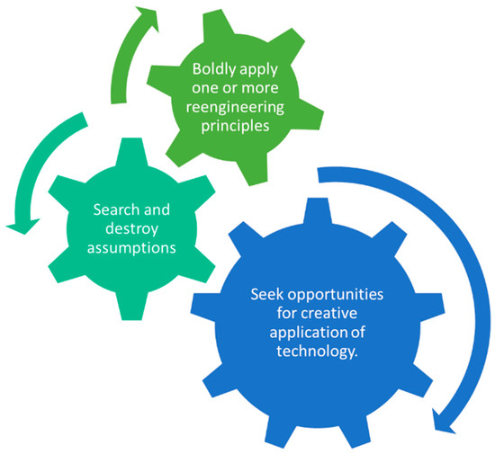 - Hammer, M. Reengineering Work: Don’t Automate, Obliterate. Harv. Bus. Rev. 1993, 1–16. [Google Scholar]