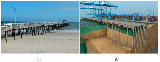 Pile supported structures: (a) a Henley beach jetty, South Australia and (b) a wharf [17].