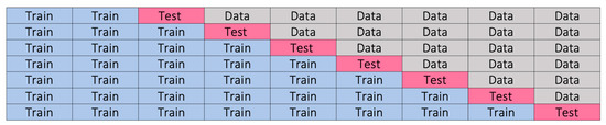 In order to validate the performance of the prediction of the models, a simulated historical forecast (SMH) approach is conducted. SMH is based on the rolling origin cross-validation approach, or otherwise known as forward chaining, where the data are split into training and testing sets and each day is tested based on the prior training data. However, this method would be computationally intensive due to conducting tests each day and would result in more forecasts that are likely to have correlated estimates of errors. While with SMH, fewer forecasts can be defined at cut-off dates and the total error can be evaluated based on all the forecast horizons. Figure 3 illustrates the process of the rolling origin cross-validation. This approach would allow the models to train on a dataset and test on another unseen dataset of the time series. Moreover, the SMH approach could be used as an indicator of the models’ generalizability in forecasting the maximum load.