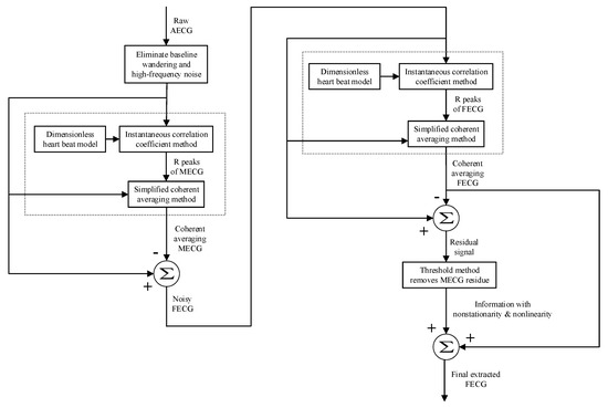 Flow chart of the proposed method. AECG is abdominal ECG and MECG is maternal ECG.