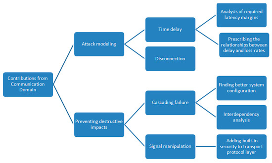 However, these assumptions on the nature of attack impacts are oversimplified and do not fully cover the new debouching aspect of joint cyber-physical models [35,36]. Others argue on the matter of communication latency’s impact on microgrid control on the first place, building on an example that puts out shreds of evidence on having an inconspicuous and highly nonlinear relationship of delay rates between the source causing the delay and the resulting delays in the networks [37]. They also state the fact that, except for the simplest of cases, deriving tight bounds between delays, or other relevant metrics such as loss rates, is nearly impossible, especially when the models’ analytical accuracy declines as the network size grows from single-hop settings to relay networks.